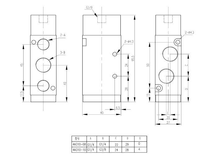 | 接管口徑 | 進(jìn)氣=出去=3/8" 排氣=1/4" |