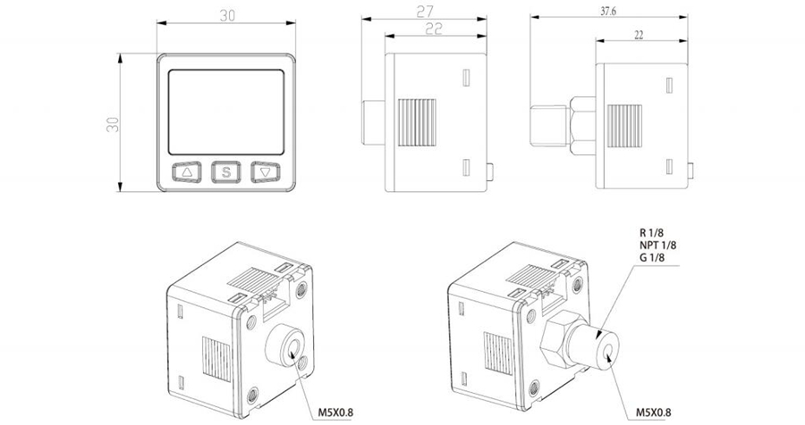 1.外觀(guān)尺寸&壓力接口